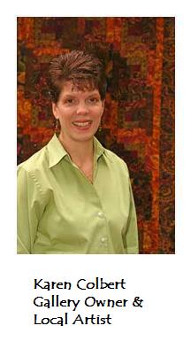 When you view Karen's work, you will be amazed at what you see. At first, her pieces look like paintings. Stepping closer, you see the small squares of fabric she uses to create a magnificent landscape or abstract color transitional pieces. Her work truly captures the essence of art. It forces the viewer to want to get a closer look, then step back to see the beauty of the whole piece. The vibrancy of her colors makes you stop to look, whether you like fabric or not.